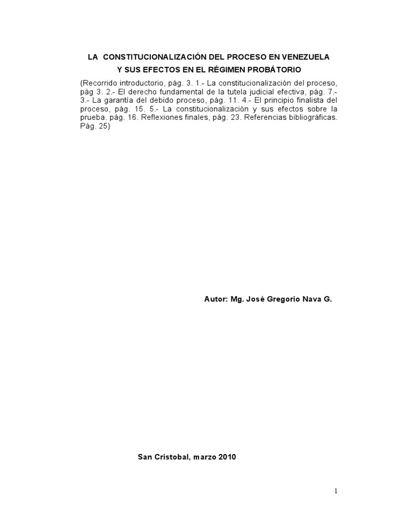 La Constitucionalizacion Del Proceso En Venezuela Pdf Ley Procesal Derecho Constitucional