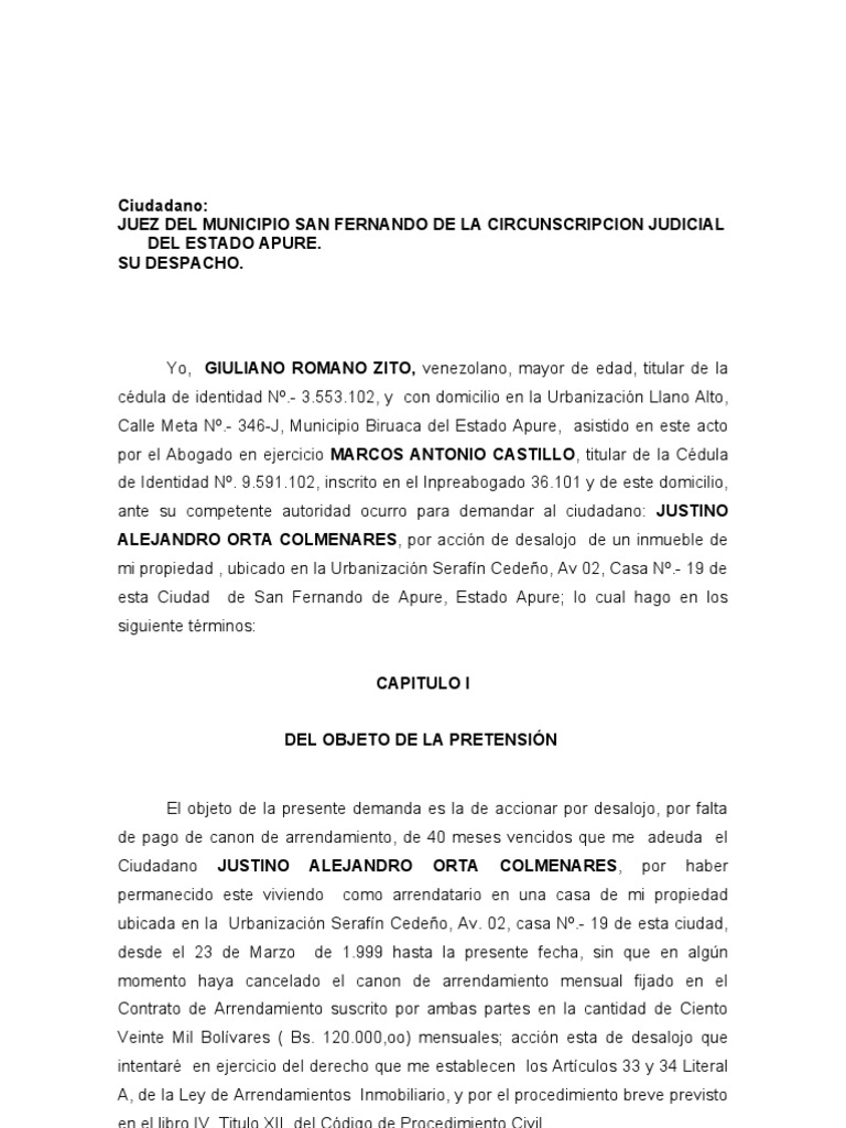 Demanda De Desalojo Pdf Alquiler Gobierno